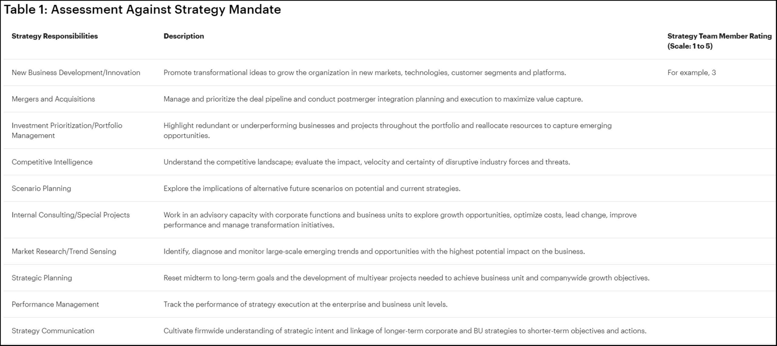 - Assess whether the strategy team’s work aligns with the strategic mandate