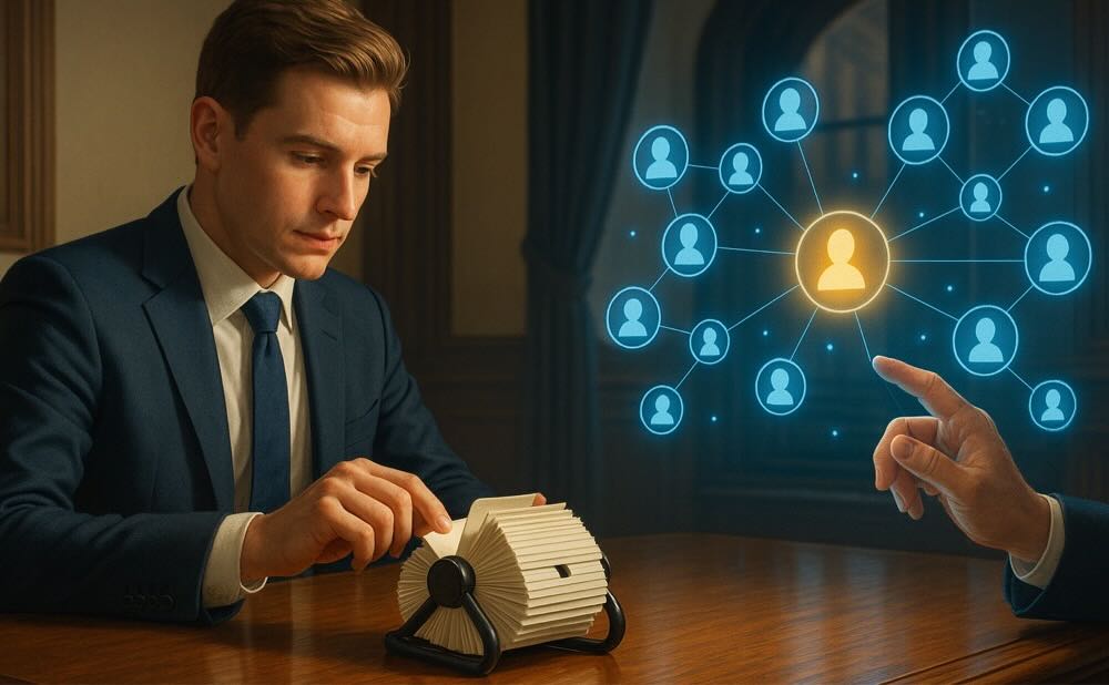 Imagine you have a traditional Rolodex, where contacts are arranged alphabetically. If you want to find someone with a specific expertise, you have to search manually through each name.